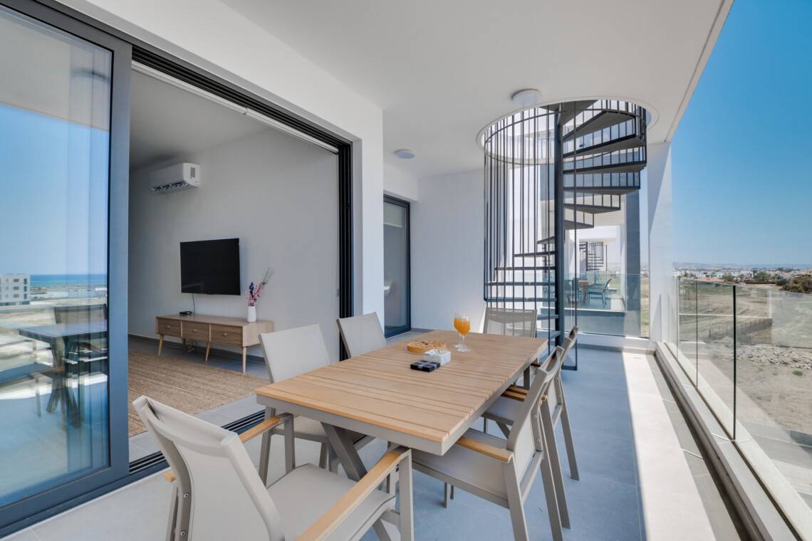 Enjoy your own private rooftop garden with stunning sea and pool views, perfect for sunbathing, evening drinks, or al fresco dining.
