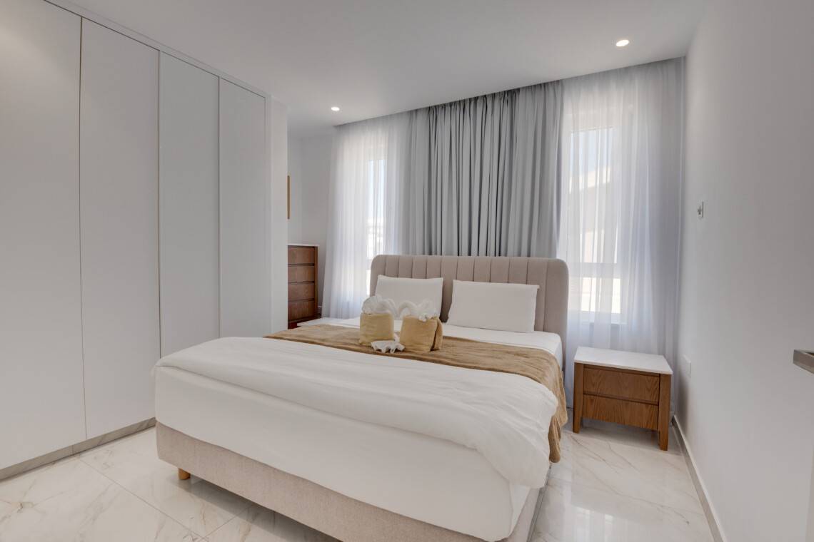 This modern apartment is the ideal base for your stay in Larnaca – close to the action yet tucked away enough to enjoy peace and privacy.